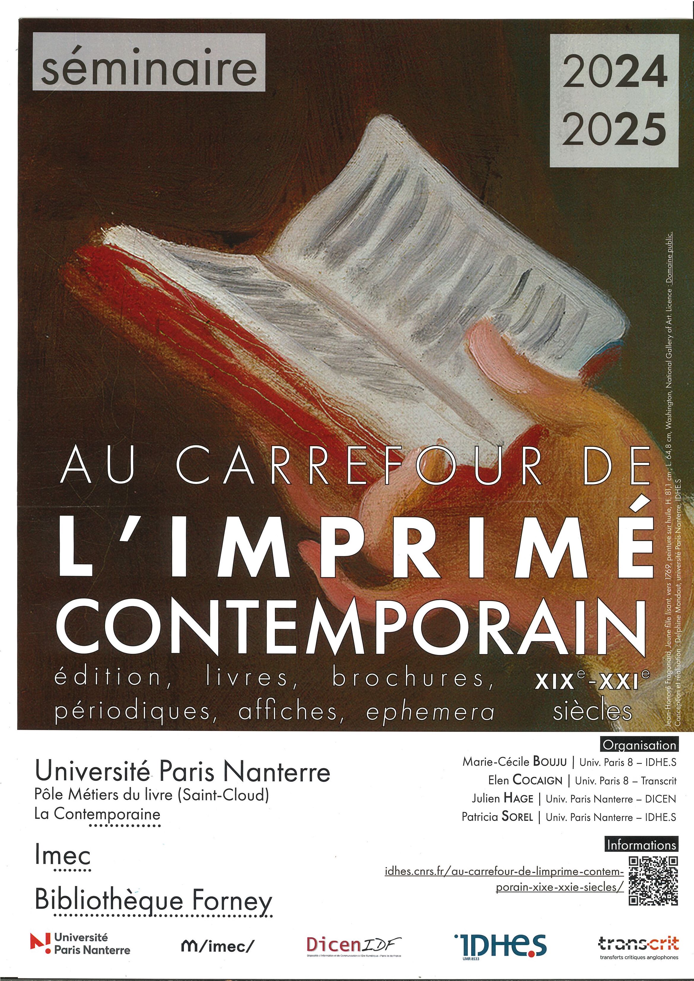 Un séminaire animé par Marie-Cécile Bouju (université Paris 8 – IDHE.S), Elen Cocaign (université Paris 8 – Transcrit), Julien Hage (université Paris Nanterre – DICEN) et Patricia Sorel (université Paris Nanterre – UVSQ, CHCSC).