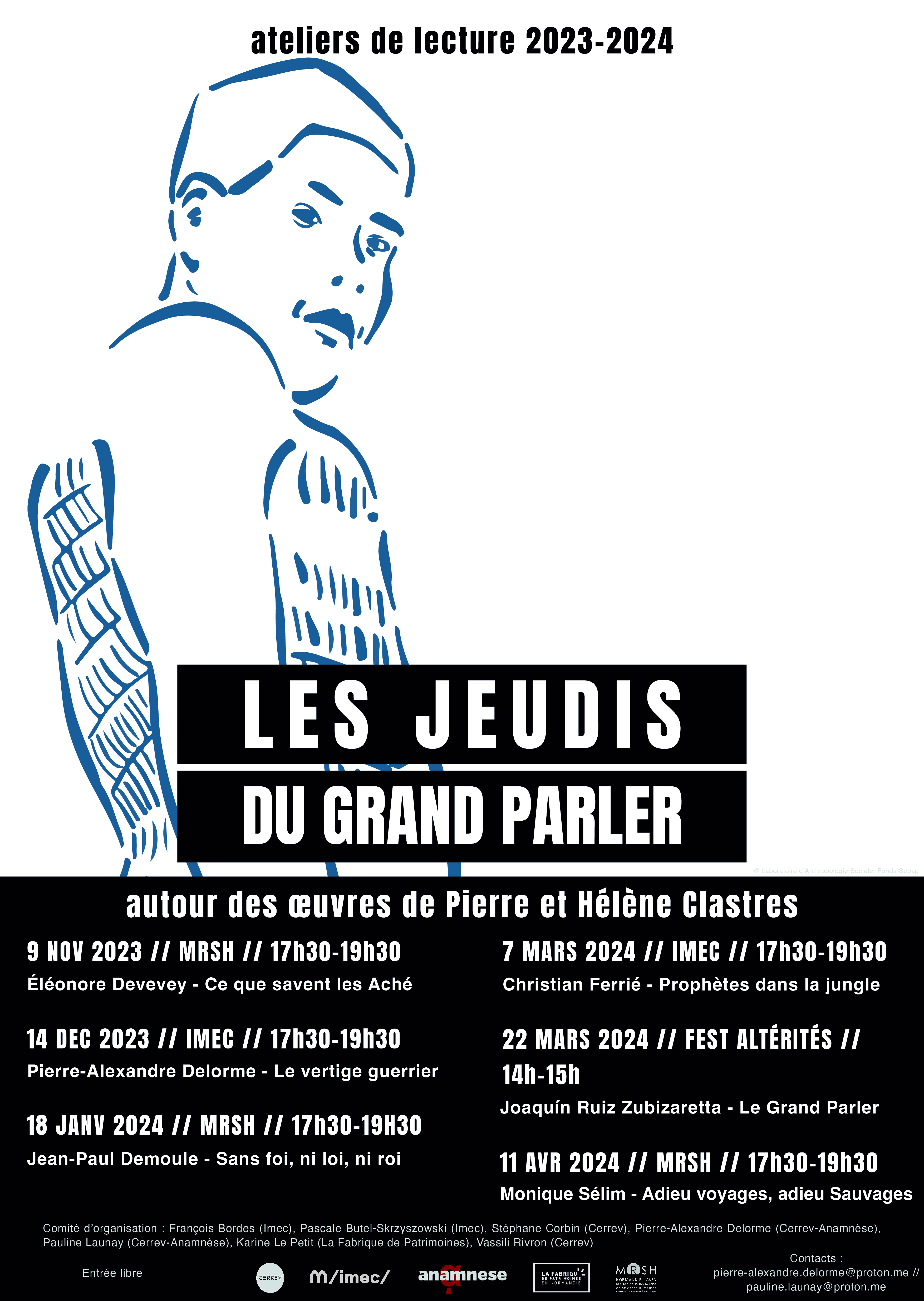 Les séances se dérouleront au cours de l’année 2023-2024, les jeudis de 17h30 à 19h30 à la MRSH de l’université de Caen et à l’Imec.