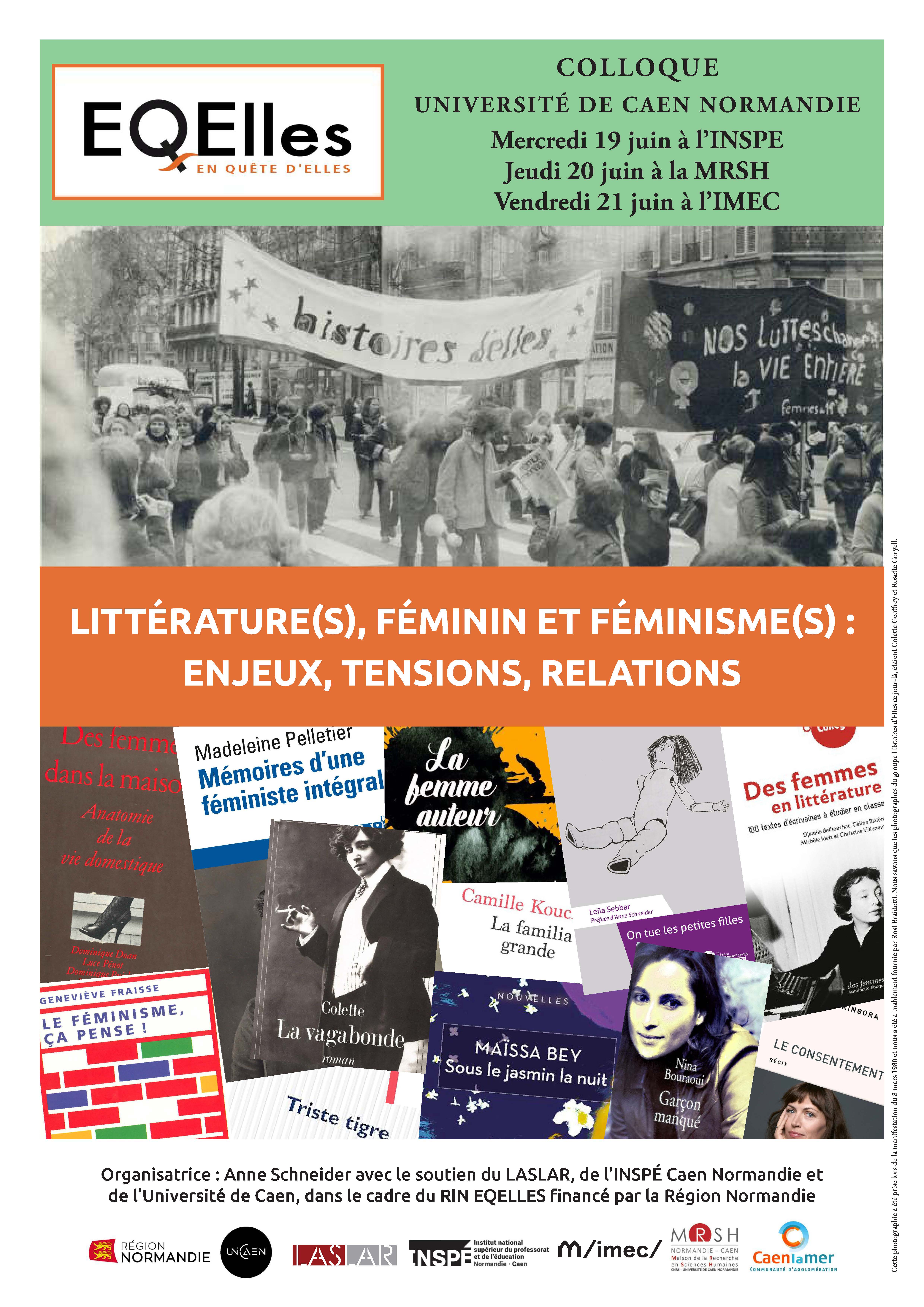Ce colloque international parachève le projet de recherche « En quête d’elles » (Eqelles) mené par l’université de Caen-Normandie (Laslar), l’INSPE de Normandie-Caen avec le soutien de la région Normandie et en partenariat avec l’Imec. Lors de ces trois journées de colloque, interviendront de grandes spécialistes de la littérature, du féminisme et de l’histoire des femmes parmi lesquelles Christine Bard, Christine Détrez, Geneviève Fraisse, Tiphaine Samoyault ou Leïla Sebbar…