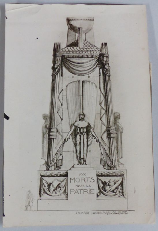 Démobilisé en mars 1919, la première moitié de l’année est consacrée à la réalisation d’un projet architectural en hommage aux victimes de la guerre pour la Fête de la victoire du 14 juillet 1919 à Paris. Avec Louis Süe et le peintre Gustave Jaulmes, il imagine un cénotaphe d’inspiration antique orné de quatre statues ailées. Construit en un temps record, il est installé sous l’Arc de triomphe pour la veillée du 13 juillet et déplacé sur un angle de la place pour les défilés du lendemain.