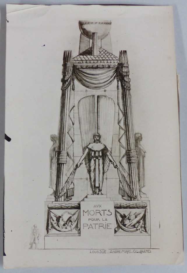 Un important dossier de presse, des photographies et des cartes postales éditées à l’occasion de l’événement figurent dans le fonds André Mare et témoignent de la création et de la réception de ce monument éphémère.