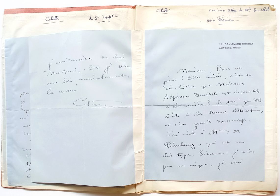 Extraits du cahier Mme Colette, recueil de lettres de Colette reçues entre 1923 et 1931, composé et annoté par Liliane Dauphin-Sarcey, la fille de Madeleine Brisson et consacré à l’autrice admirée.