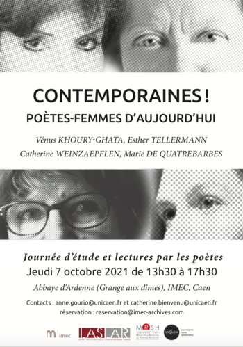 « Ce troisième volet s’inscrit dans le prolongement de la journée qui s’est tenue à Caen, le 7 octobre 2021, dans les bâtiments de l’IMEC à l’Abbaye d’Ardenne. Aujourd’hui lieu d’une culture vive et vivante, l’abbaye d’Ardenne accueille dans ses murs chargés d’Histoire les archives foisonnantes des maisons d’éditions, des écrivains, historiens, philosophes, cinéastes des XXe et XXIe siècles. L’IMEC se donne aussi pour mission de faire vivre les projets culturels orientés en direction des visages variés de la création contemporaine. C’est en ce lieu aux résonances fortes, et en compagnie des étudiants en Licence de Lettres de l’Université de Caen, que s’est déroulé le troisième volet du projet « Poèt(e)s ». Marie de Quatrebarbes, Esther Tellermann, Catherine Weinzaepflen y sont venues partager leur expérience vive de la poésie, que prolongeaient les communications critiques de Lénaïg Cariou, Thomas Augais et Isabelle Garron. Vénus Khoury-Ghata a pris part à la journée en confiant un entretien à Albert Dichy, directeur littéraire de l’IMEC. »
