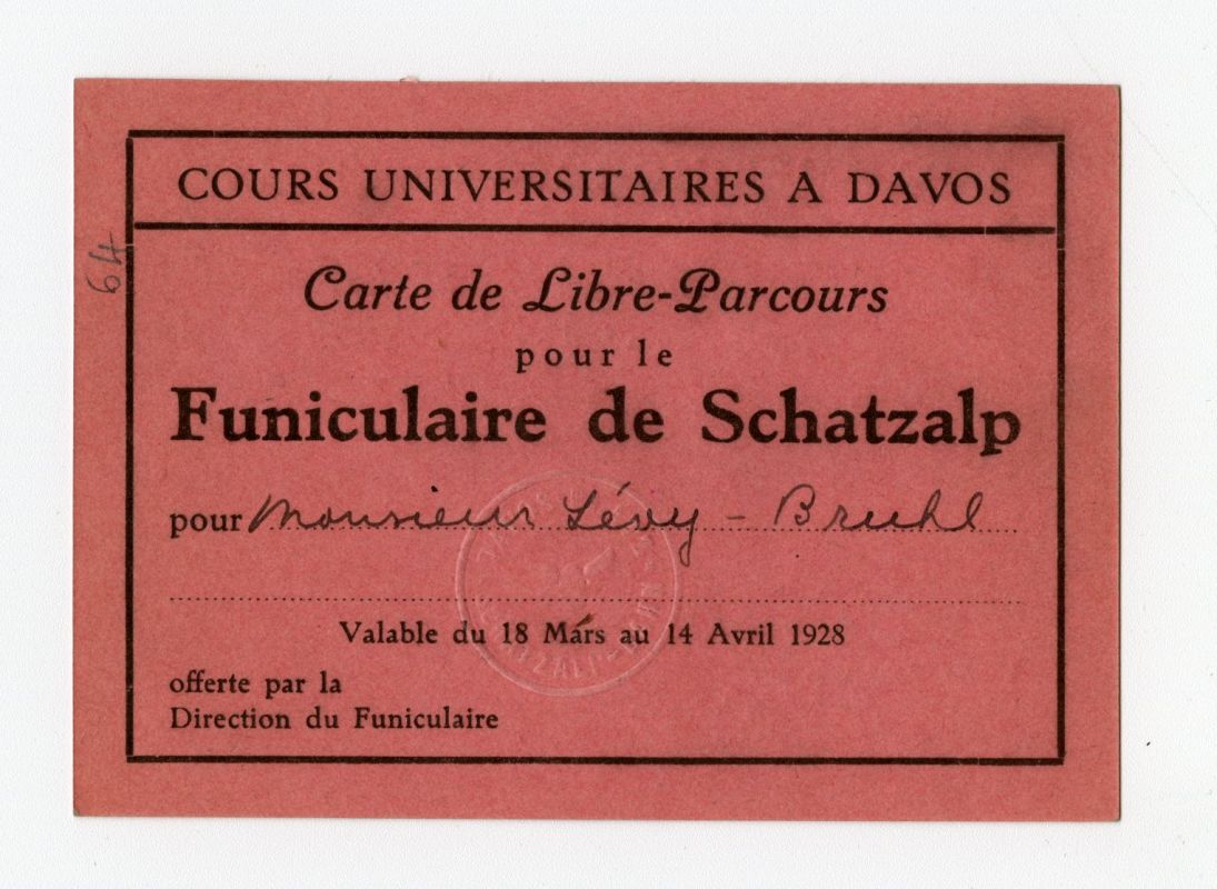 Lucien Lévy-Bruhl y fut invité pour donner plusieurs conférences sur son ouvrage La Mentalité primitive. On ignore si, à 71 ans, il pratiquait le ski alpin ou un autre sport de montagne, mais il pouvait, entre deux conférences, se rendre à Schatzalp, sanatorium situé 300 mètres au-dessus de Davos et réputé pour son point de vue privilégié sur le massif alpin.