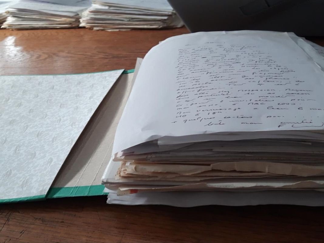 Les lettres sont alors reconditionnées en dossiers prêts à être décrits sur une base de données selon un plan de classement qui doit permettre une compréhension et une accessibilité rapide du fonds. Cette dernière étape aussi prend du temps mais reste indispensable pour permettre à l’œuvre d’Alain Jouffroy et à sa vie de s’inscrire dans le Temps.