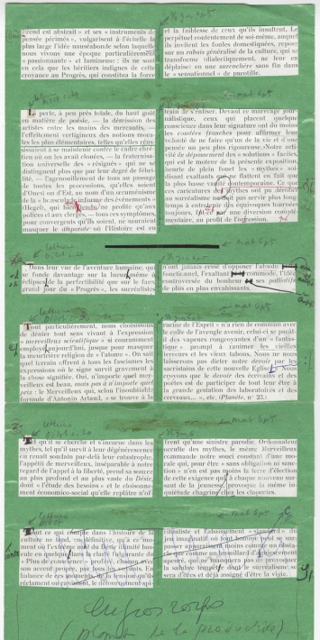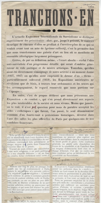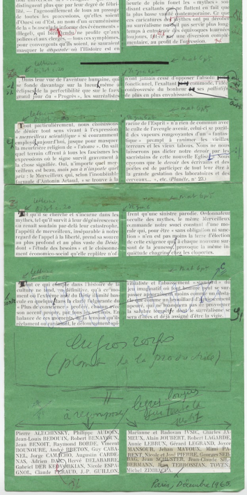 Tract accompagnant l'exposition « L'Écart absolu » de la galerie L'Œil qui se revendique comme une manifestation de « Combat » tournant en dérision les standards du « bonheur » de la société industrielle de consommation de masse.