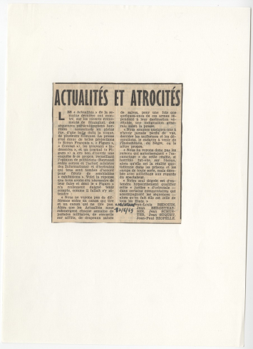 Déclaration collective à l’initiative de jeunes compagnons d’André Breton, paru dans le journal Le Libertaire, auxquels les surréalistes vont collaborer jusqu'à la polémique contre Albert Camus à l’occasion de la parution de L'Homme révolté (1951).