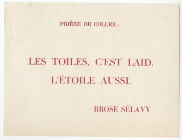 Rrose Sélavy, Les toiles c'est laid, 1952,
