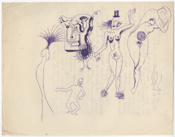 Connu pour ses dessins d’humour parus en albums et dans divers journaux, Maurice Henry (1907-1984) a adhéré au Grand Jeu puis, à partir de 1933, au groupe surréaliste jusqu'en 1951. Ce dessin tendant vers l’automatisme accompagne dans ses archives des textes transcrivant des rêves.