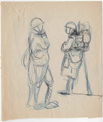 Matières premières Les Papiers La Librairie Les Carnets de l’Imec La Galerie en ligne Les Vidéos Les Blogs La Grande Guerre en archives 10. André Warnod ✕ ❮ ❯ Soldats Sans titre [Soldats], 1914-1918. Archives André Warnod / Imec