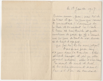 Georges Sabiron, lettre à Jean Pauhan, 1er janvier 1917.
