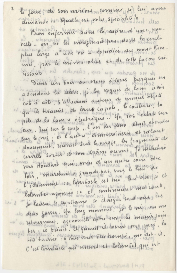 L'écrivain Joe Bousquet, paralysé depuis la Grande Guerre, revient sur un souvenir de cette période: « Dans un bois où nous étions parqués en attendant la relève […] » Lettre à Jean Pauhan, 1943. Archives Jean Paulhan/Imec.