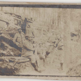 Matières premières Les Papiers La Librairie Les Carnets de l’Imec La Galerie en ligne Les Vidéos Les Blogs La Grande Guerre en archives 4. Commandement Quartier général dans la forêt d'Argonne Pause au quartier général Poste de commandement de la cote 285