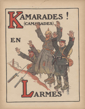 Matières premières Les Papiers La Librairie Les Carnets de l’Imec La Galerie en ligne Les Vidéos Les Blogs La Grande Guerre en archives 8. Propagande alliée ✕ ❮ ❯ Kamarades en Larmes « Kamarades (camarades) en Larmes ». Alphabet de la guerre, 1918. Archives Éditions Hachette / Imec
