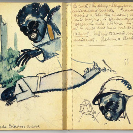 Matières premières Les Papiers La Librairie Les Carnets de l’Imec La Galerie en ligne Les Vidéos Les Blogs La Grande Guerre en archives 9. Les carnets d'André Mare Canon en tenue de camouflage André Dunoyer de Segonzac Canon de 260 Bois du sanctuaire Page de carnet 1915 10 sept. Bombardements cette nuit Bois de Biaches Page de carnet 1918 Jacques Villon et André Mare