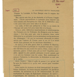 Dossier réalisé par Claire Paulhan à partir du catalogue de Robert O. Paxton, Olivier Corpet & Claire Paulhan, Archives de la vie littéraire sous l’Occupation / À travers le désastre (co-éditions Tallandier/ Imec, 2009), imprimé à l’occasion des expositions Between Collaboration and Resistance : French Literary Life under Nazi Occupation 1939-1945 (New York Public Library, 2009) et Archives de la vie littéraire sous l’Occupation (Hôtel de Ville de Paris, 2011).