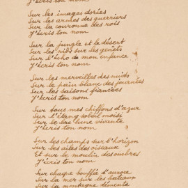Matières premières Les Papiers La Librairie Les Carnets de l’Imec La Galerie en ligne Les Vidéos Les Blogs Le livre sous l'Occupation 15. Une seule pensée, la liberté, par Paul Éluard « le seul mot que j’avais en tête était le mot liberté » Au nez et à la barbe des censeurs La Main à Plume Max-Pol Fouchet