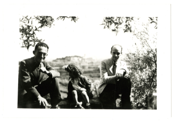Pierre Seghers, une petite fille et Loys Masson, à Villeneuve-lès-Avignon, en 1943.