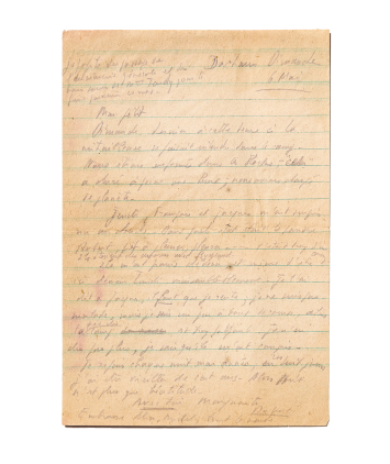 Lettre de Robert Antelme, écrite depuis Dachau le 6 mai 1945 et transmise à Marguerite Duras quelques jours plus tard par une employée de l’Aumônerie générale qui accompagne l’armée américaine : « Dimanche dernier à cette heure-ci la mitrailleuse se faisait entendre dans le camp. Nous étions enfermés dans les blocks, “cela” a duré à peine une heure ; nous avions changé de planète. / Jeudi, François [Mitterrand] et Jacques [Bénet] m'ont surpris nu aux douches. Dans quel état était le pauvre Robert, prêt à pleurer, pleurer… […] Ils m'ont promis de venir et même d'être ici demain lundi vraisemblablement. Je l'ai dit à Jacques, il faut que je rentre ; je ne suis pas malade, mais je suis un peu à bout de course, alors la vie du camp est trop fatigante. Je n'en dis pas plus, je sais qu'ils m'ont compris. » Sur le conseil de François Mitterrand – qui représente la France aux côtés du général Lewis pendant la libération des camps, à la demande du général de Gaulle –, Dyonis Mascolo ira chercher lui-même en voiture Robert Antelme à Dachau et, déjouant la stricte gestion du camp par l’armée américaine, l’arrachera au mouroir des malades du typhus et le ramènera agonisant à Paris.