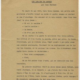 Matières premières Les Papiers La Librairie Les Carnets de l’Imec La Galerie en ligne Les Vidéos Les Blogs Le livre sous l'Occupation 7. Jean Paulhan, le résistant de La NRF Le réseau « du musée de l’Homme » Slogans d’avant l’imprimerie Slogans des jours sombres Une semaine au secret