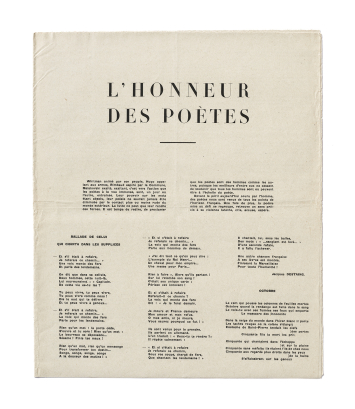 Par ailleurs, des extraits seront imprimés sous forme de tracts par les éditions de Minuit, comme « L’Honneur des poètes », distribué en juin 1944…